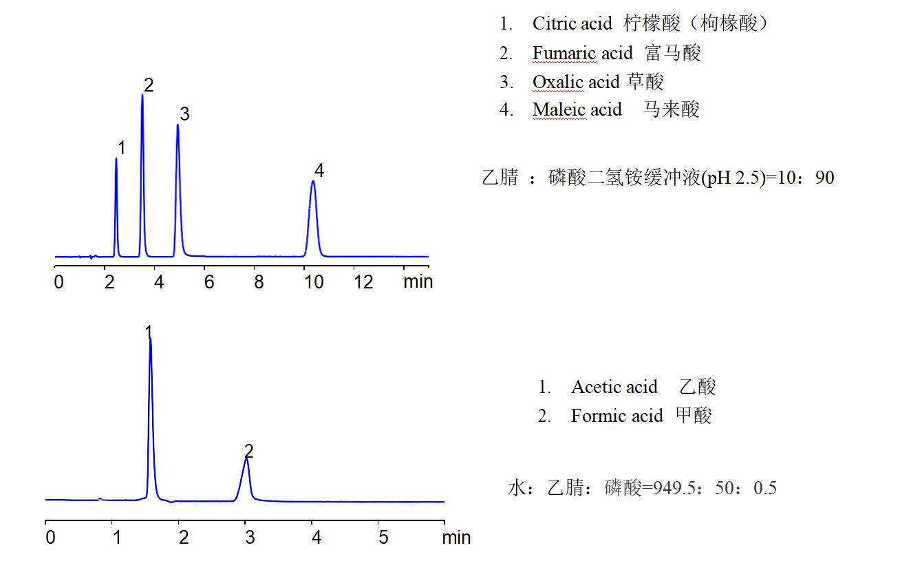 Comixsil HAX 分析草酸、檸檬酸、馬來酸、富馬酸、甲酸及乙酸等一元,二元, 三元有機酸