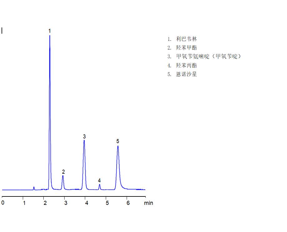 App ID: FLM-C240007 Comixsil RP-100 同時分析抗病毒藥物利巴韋林甲氧芐啶恩諾沙星羥苯甲酯 的檢測 色譜柱:Comisil RP-100 3u 150*4.6mm(貨號:FMF-100R3-EONU) 流速:1 mL/min 檢測:UV 215nm 流動相:ACN:0.3%H2SO4 = 50:50