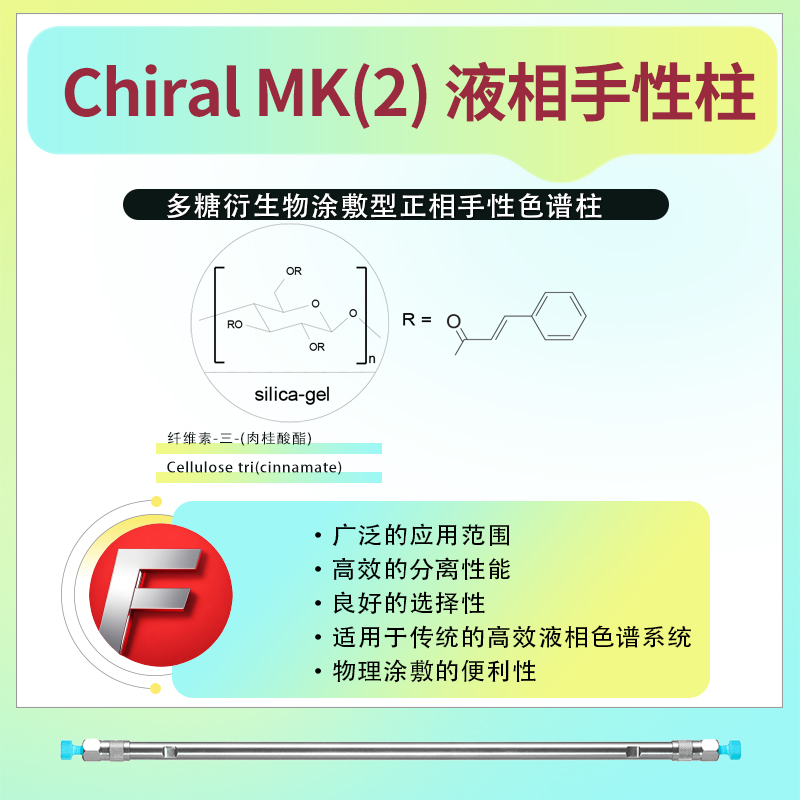 - Chiral MK(2) 液相手性色譜柱 Chiral MK(2)液相手性色譜柱是菲羅門公司FLM?Chiral系列中的一種涂敷型手性柱